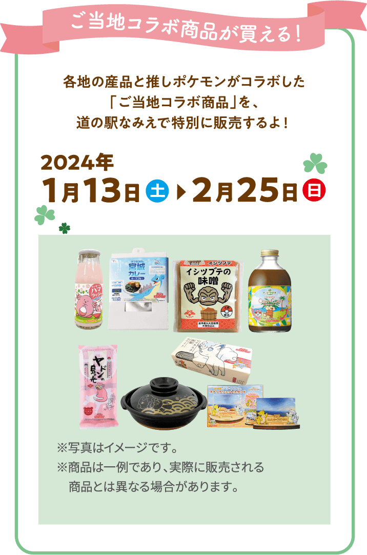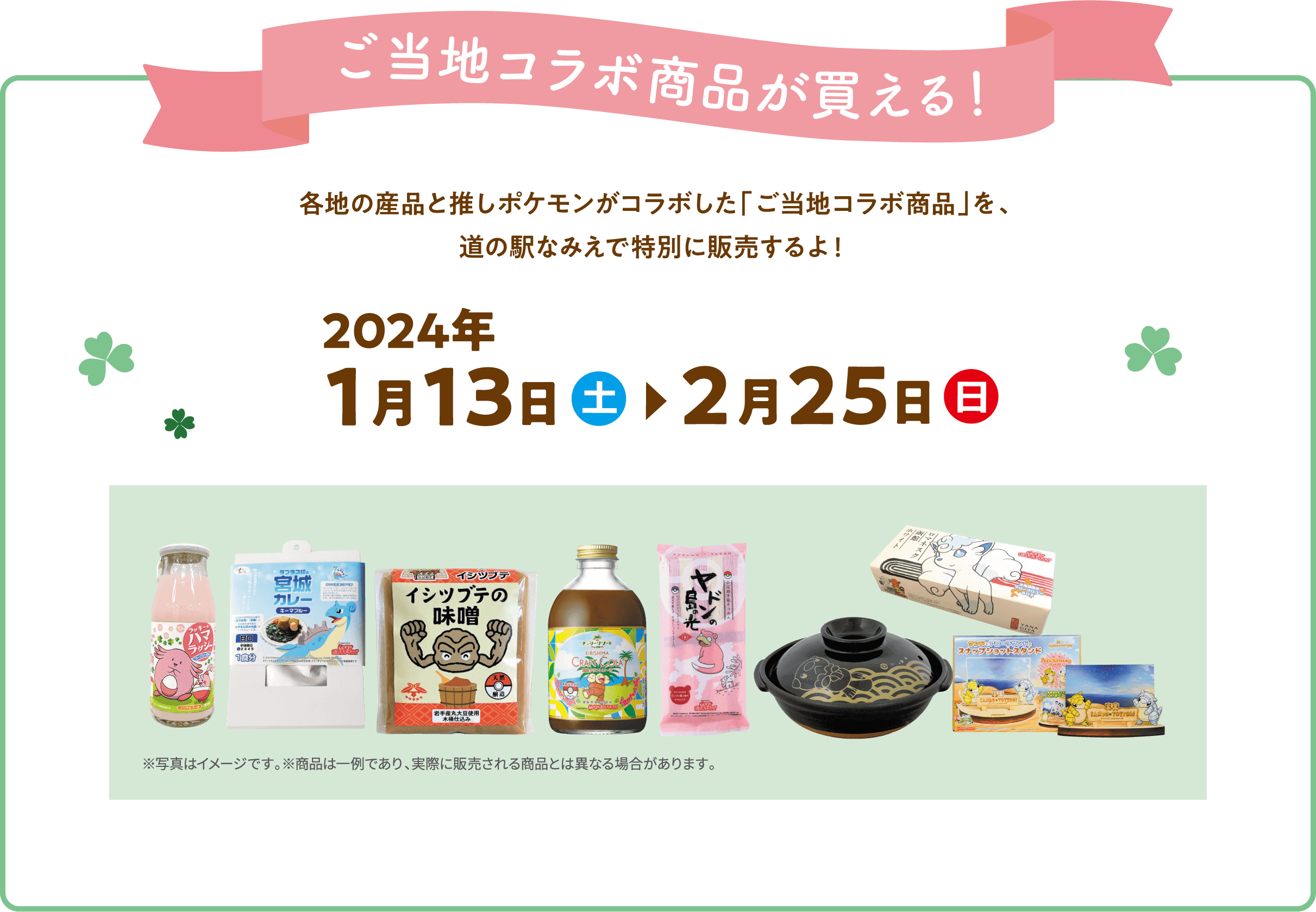 各地の産品と推しポケモンがコラボした「ご当地コラボ商品」を、道の駅なみえで特別に販売するよ!