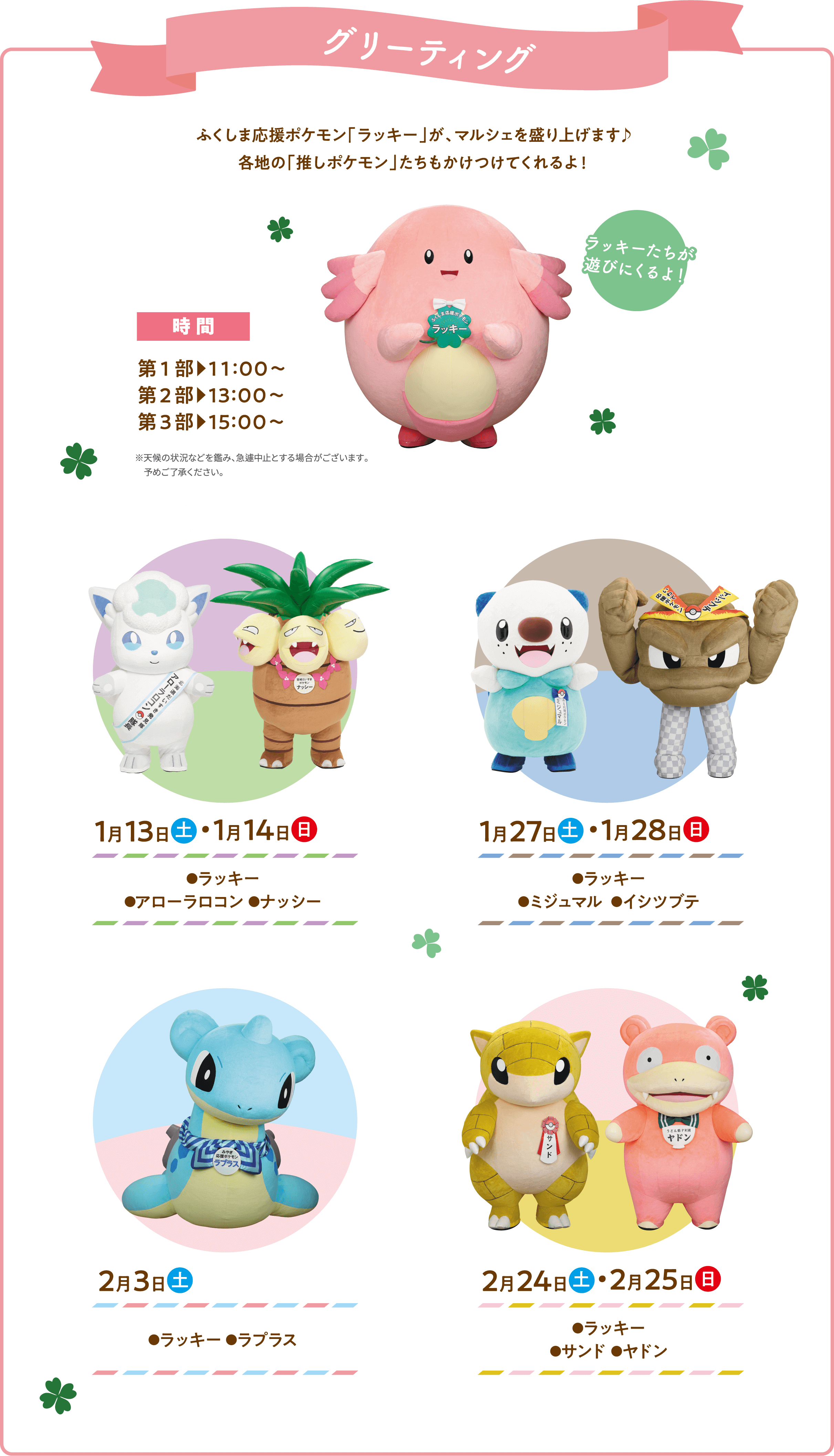 ふくしま応援ポケモン「ラッキー」が、マルシェを盛り上げます♪各地の「推しポケモン」たちもかけつけてくれるよ!